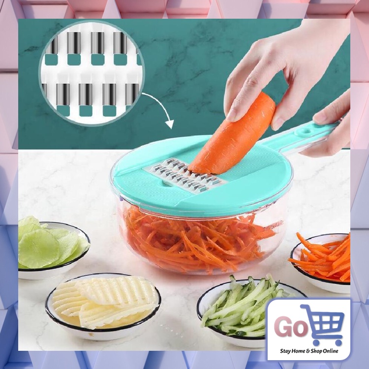 Name: Go - H7001 Set Alat Parutan 12 In 1 / Mandoline Bulat / Alat Pengiris & Pemotong Kentang Sayur