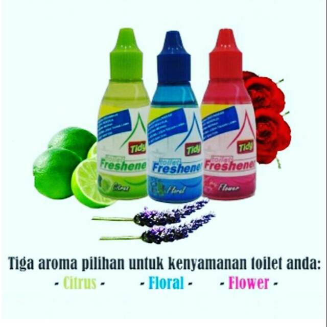 Pengharum closet ada masalah toilet dengan bau tak sedap? Tidy toilet freshener mengatasi masalah anda dengan mudah dan cepat. Menjadikan toilet anda harum dan segar serta memberikan nuansa merah dengan meneteskan 3 tetesan kedalam c