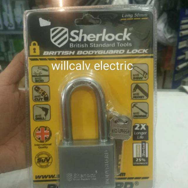 Gembok Sherlock bodyguard 50 mm leher panjang ,- anti cairan kimia- anti gunting potong-anti bor- anti ge