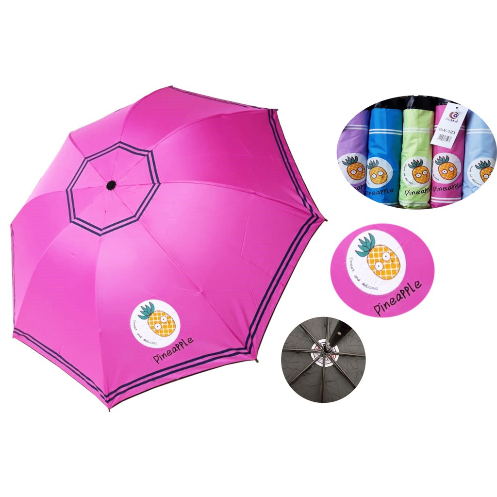 Ready :Payung Lipat 4 Fancy Motif Pineapple merk OSAKA BW-123Detail Produk :Berat : 325gram (1kg pertama muat 4pcs)Diameter Payung : 100cmPanjang Payung keadaan dilipat : 24cmGambar : warna dengan motif pineappleBahan : Kain tebal dengan lapisan ANTI UVWarna dalam payung : HitamWarna Rangka : HitamWarna Gagang : HitamKokoh dan tidak mudah berkaratAvailable Color :- Biru Tua- Ungu- Biru Muda- Magenta (Pink Tua)- HijauKetentuan (Wajib Dibaca) :- Warna/Gambar/Corak/Motif tidak mengikatsilahkan request pada kolom keterangan (1 utama dan beberapa alternatif), bila stock warna yang agan request tidak ada, maka akan kami kirimkan stock yang ready TANPA KONFIRMASI karna barang yang datang selalu acak.- Pembelian diatas 12pcs warna/gambar/corak/motif tidak bisa request alias random.- Tidak ada garansiBarang yang kami kirim dalam kondisi baru dan tidak cacat, karna selalu dicek terlebih dahulu.- Barang yang sudah dibeli tidak dapat dikembalikan=== Happy Shoppin