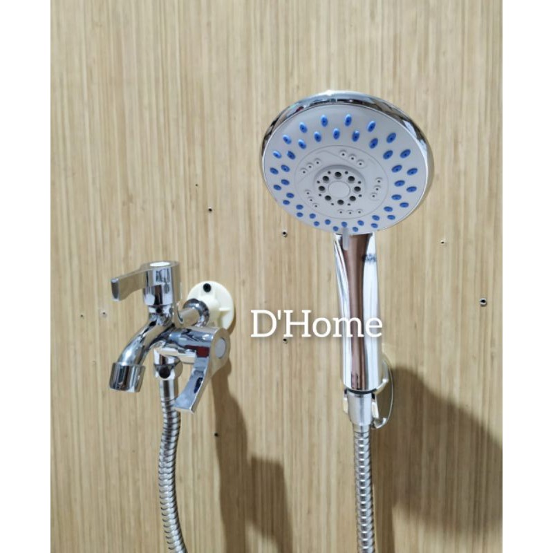 PAKET Hemat.!!KRAN Air CABANG + Hand Shower model MinimalistHarga sudah Termasuk;* Kran cabang / kran Double* Hand Shower Minimalist model 5 posisi air bisa di setel2 .* Bracket untuk Cantelan shower* Selang Shower stainless steel* Baut & fisher untuk pemasangan bracket.Ukuran drat / pipa : 1/2 inch. Standart univ
