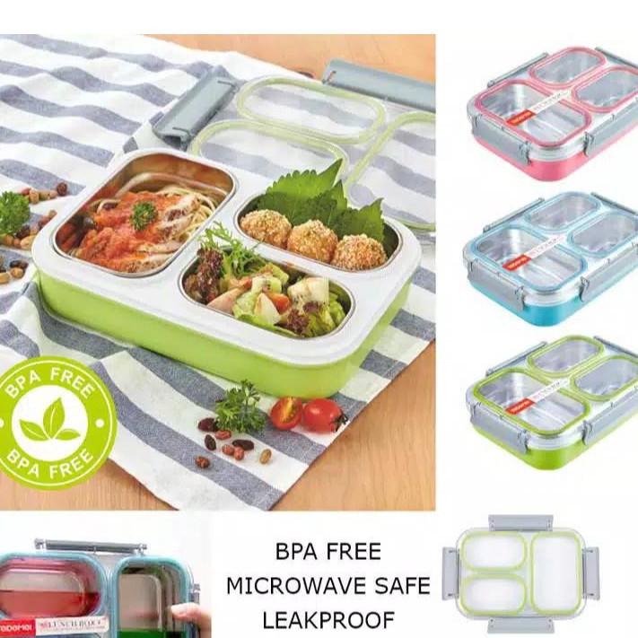 Paling Murah Perlengkapan di Kabupaten Karanganyar Kotak Makan Anak Lunchbox Tedemei 6540 Pink Green Blue Stainles Tempat Bekal Anti Tumpah 3 Sekat dari Tedemei Kota Bogor
