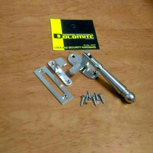 Berfungsi sebagai pengunci jendela baik buka samping atau ke depan (Jungkit)- Merk : Dolomite- Kode Barang : RB-2106- Material : Kuningan- Finishing : Satin Nickel / Doff- Sudah termasuk sekrup dan plat lawan untuk pemasanganNB :- Mohon untuk melakukan konfirmasi ketersediaan stok barang terlebih dahulu demi kelancaran proses pemesanan- Harga yg tertera adalah harga per pcs / satuan- Barang yg kami kirim adalah barang baru yg sudah kami cek kondisi dan kelengkapannya.Selamat Berbe