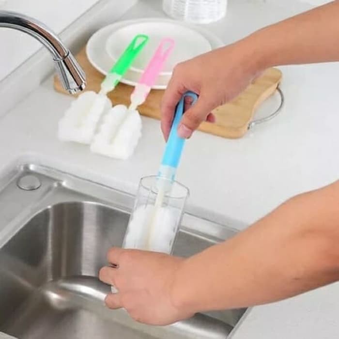 Sikat dengan spons yang akan membantu anda pada saat mencuci botol air minum, botol susu, gelas, mug, cangkir, termos, dll Bahan : Plastik + Sponge (Busa)Ukuran : detail ada di gambar.Mohon maaf warna dikirim acak sesuai persediaan. Membeli = se
