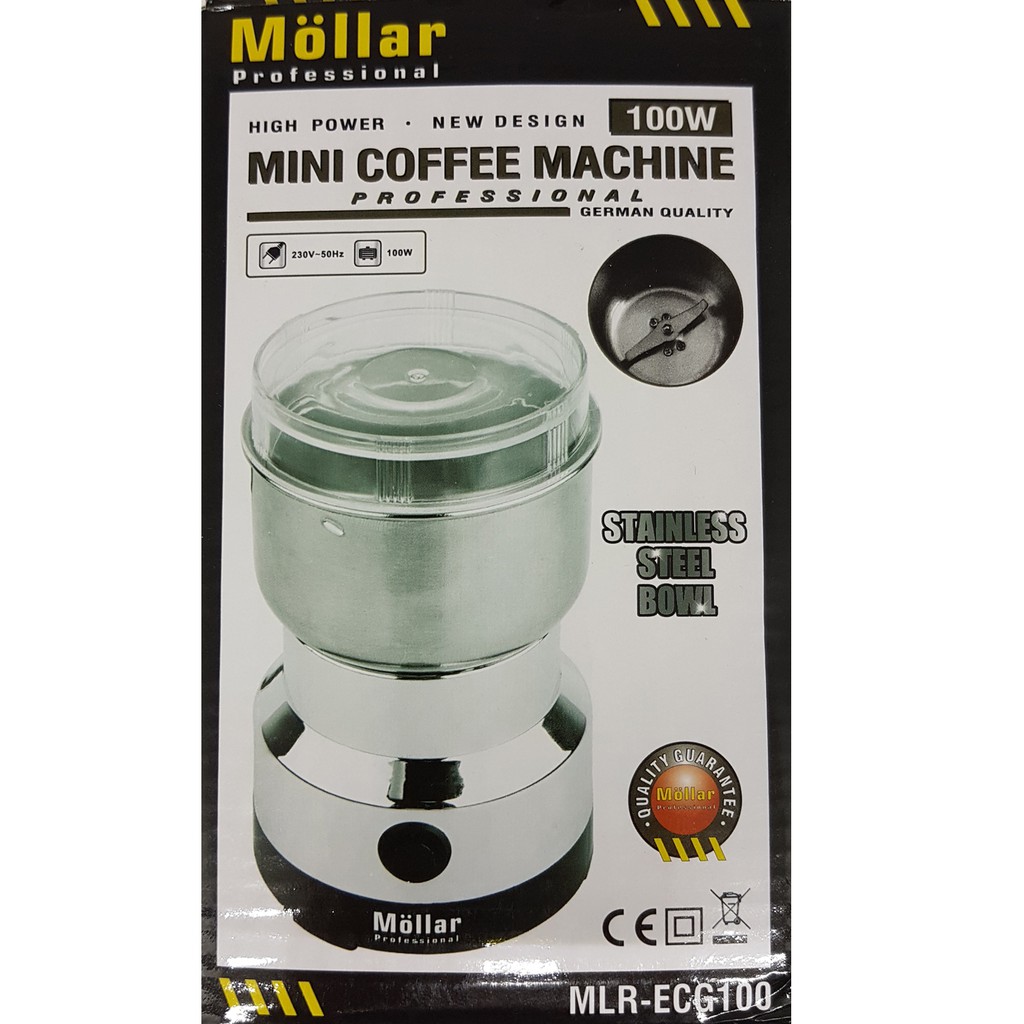 SKU : MLR-ECG100MINI COFFEE MACHINEDaya listrik : 100 WattKecepatan tanpa beban : 26.000 rpmKapasitas blender : 50 gramBahan wadah blender : besi stainless steelWAKTU PENGGUNAAN YANG DISARANKAN : 30 - 45 D
