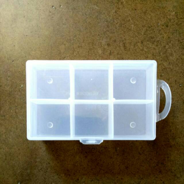 Mini Box Sekat 6*Cocok Untuk Mini Pentul / Aksesoris Kecil / Mute2 Beads / Aksesoris Pancing / Tempat Obat* Sekat Tidak Bisa Diubah* Size Box Kecil = 13.6 x 7.8 x 3.